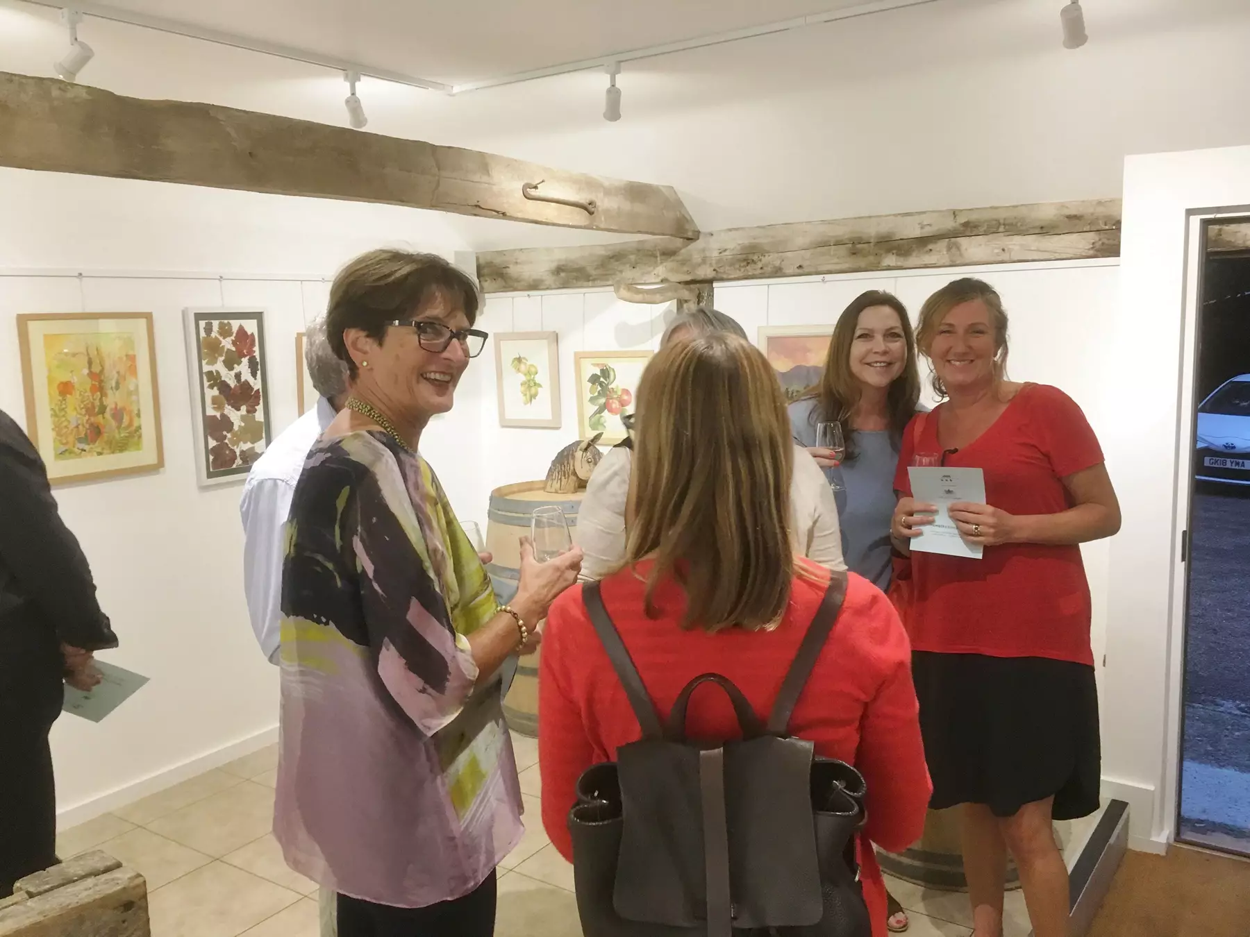 We have formed a very productive relationship with the Canterbury Society of Art who currently have an exhibition and sale of members’ work in the gallery. We have just hosted the 50th Anniversary of the Society with a lunch in our impressive Kent Barn, originally a threshing barn. It is our intention to use this building as an event space for art exhibitions and other social and cultural events. The Kent barn is one of a number of attractive 18th century buildings in the farmyard, including a rare dovecote which is featured in the Chartham vineyard logo.
